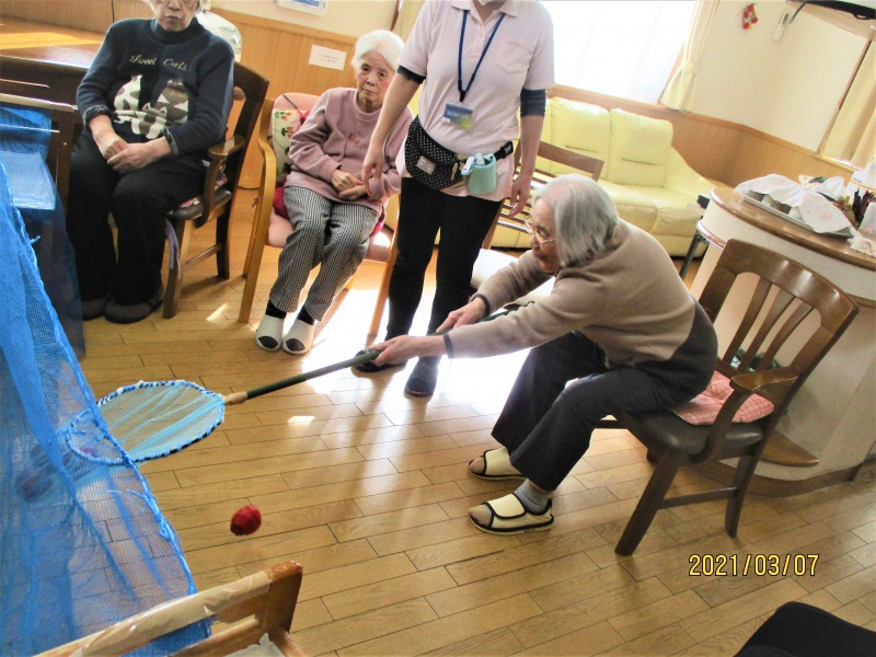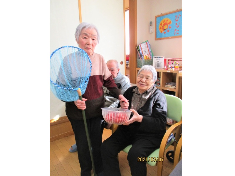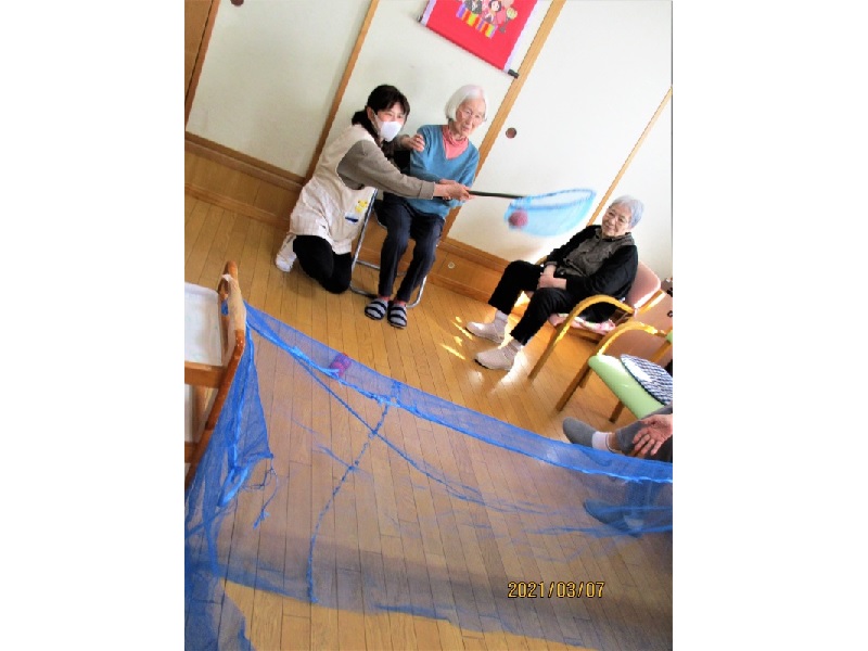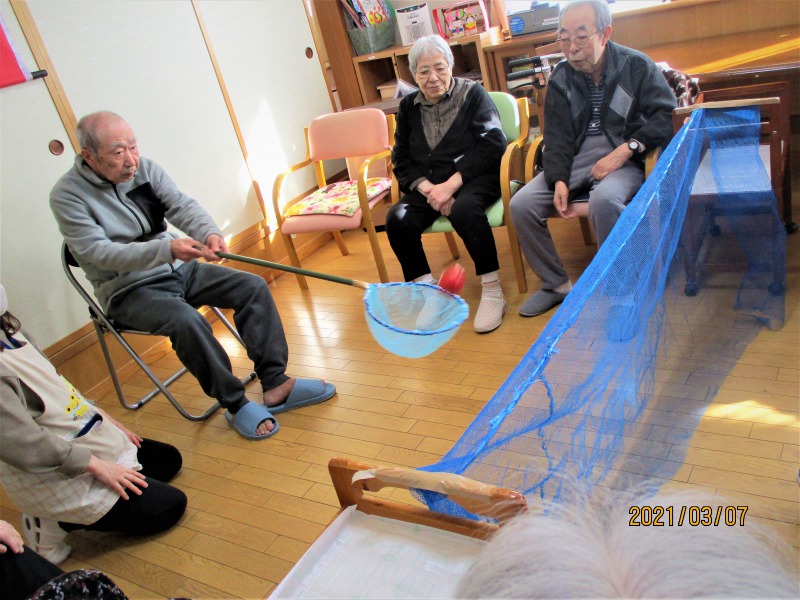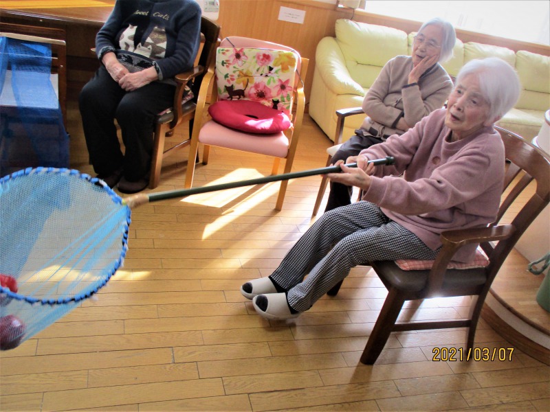 グループホームひなた 2021/3月 レクリエーション(玉すくい) -