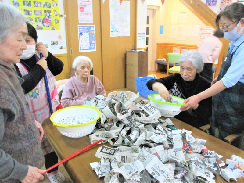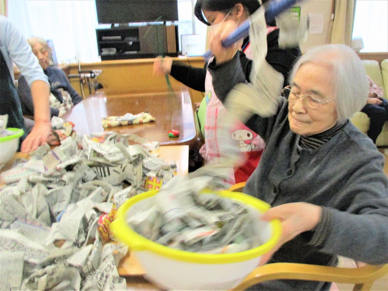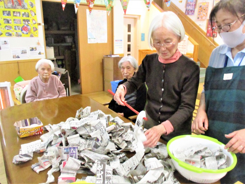 グループホームひなた 2020/12月 レクリエーション ペーパー釣り -