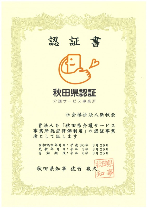 「秋田県介護サービス事業所認証評価制度」認証更新