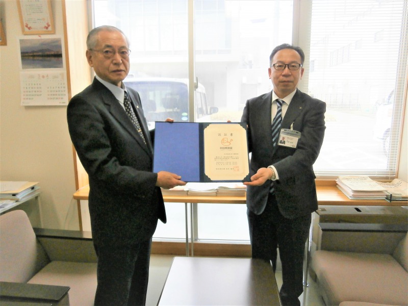 平成30年3月に認証を受け、今回の更新により引き続き認証マークを掲示することができます。